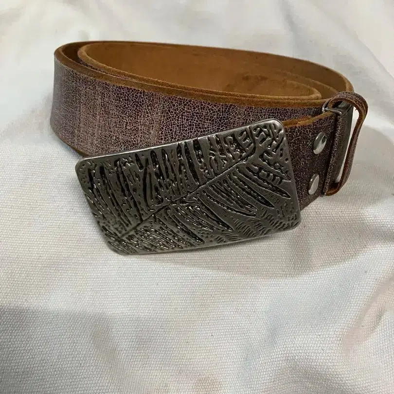 브라운 가죽 벨트 잎 무늬 버클