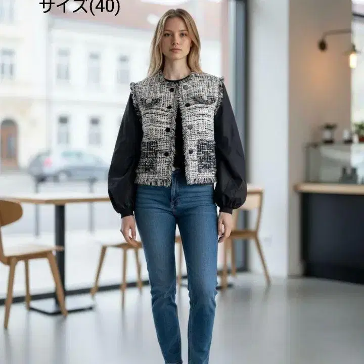 클래시컬한 모노톤의 트위드 소재를 베이스로, 소매가 볼륨감 있는 벌룬 슬리브로 절개된 엣지 있는 디자인. 심플하면서도 착용하는 것만으로 단번에 세련된 인상을 줍니다.