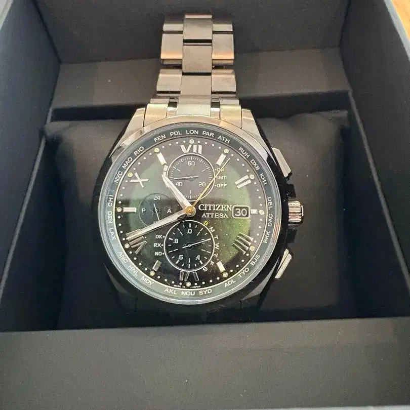 시티즌 아테사 다이렉트 플라이트 티타늄 크로노그래프 월드 타임 전파 솔라