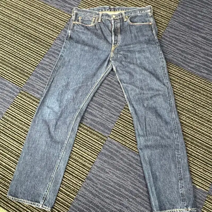 마음에 들었지만 사이즈가 맞지 않아 판매합니다. 좋은 느낌으로 페이드감이 나왔습니다. 색상도 예쁜 블루라서 어떤 장면에도 맞추기 쉽습니다. 패치 업 사진의 블루가 실물에 가깝습니다. 약간 슬림한 사양입니다. 사이즈는 아래를 참고 부탁드립니다. 평평하게 놓음 허리 44 인심 75 허벅지 31 밑단 폭 21