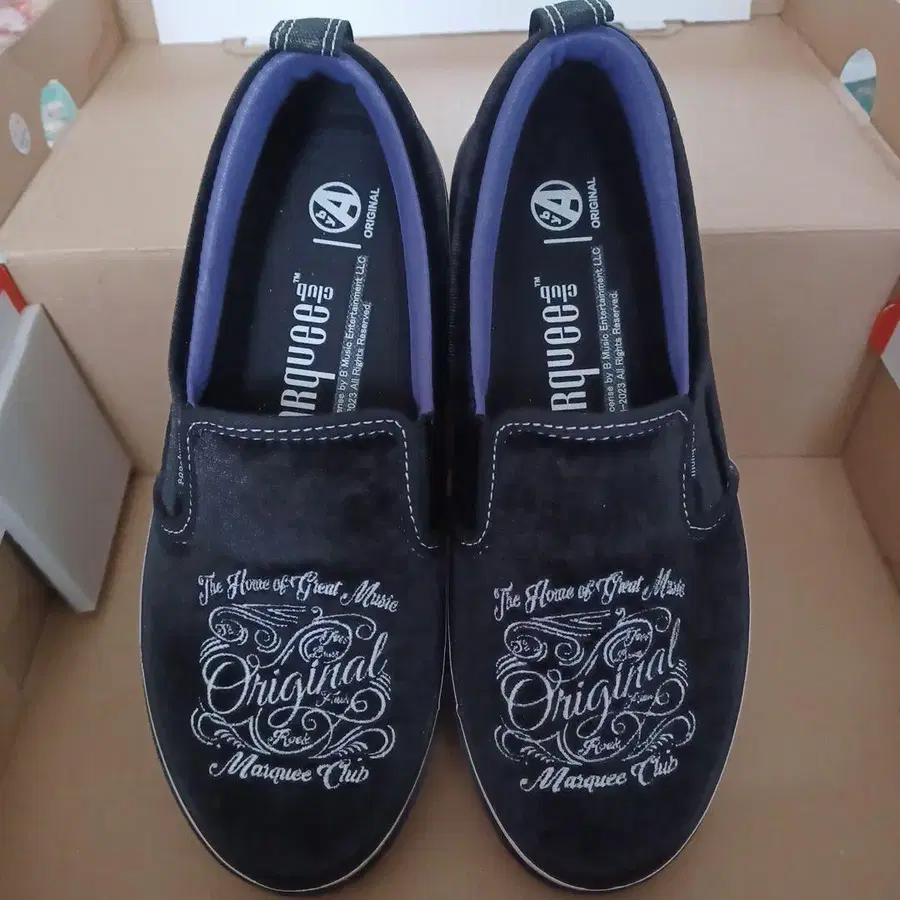 스웨이드풍의 블랙 슬립온으로, 러버 솔이 쾌적한 착용감을 제공합니다. - 브랜드: Marquee Club - 색상: 블랙 - 디자인: 슬립온 스타일 - 소재: 스웨이드풍 - 밑창: 러버 솔 미사용 새상품