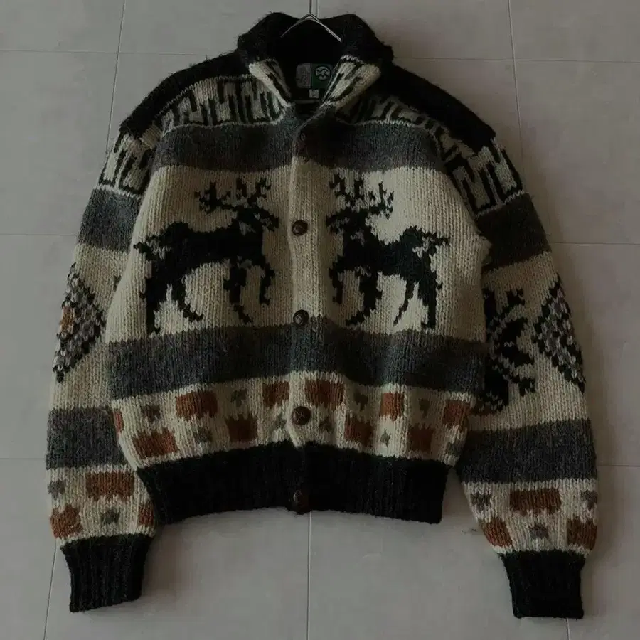 버팔로 니트 카우친 스웨터 사슴 패턴 가디건 그레이 계열