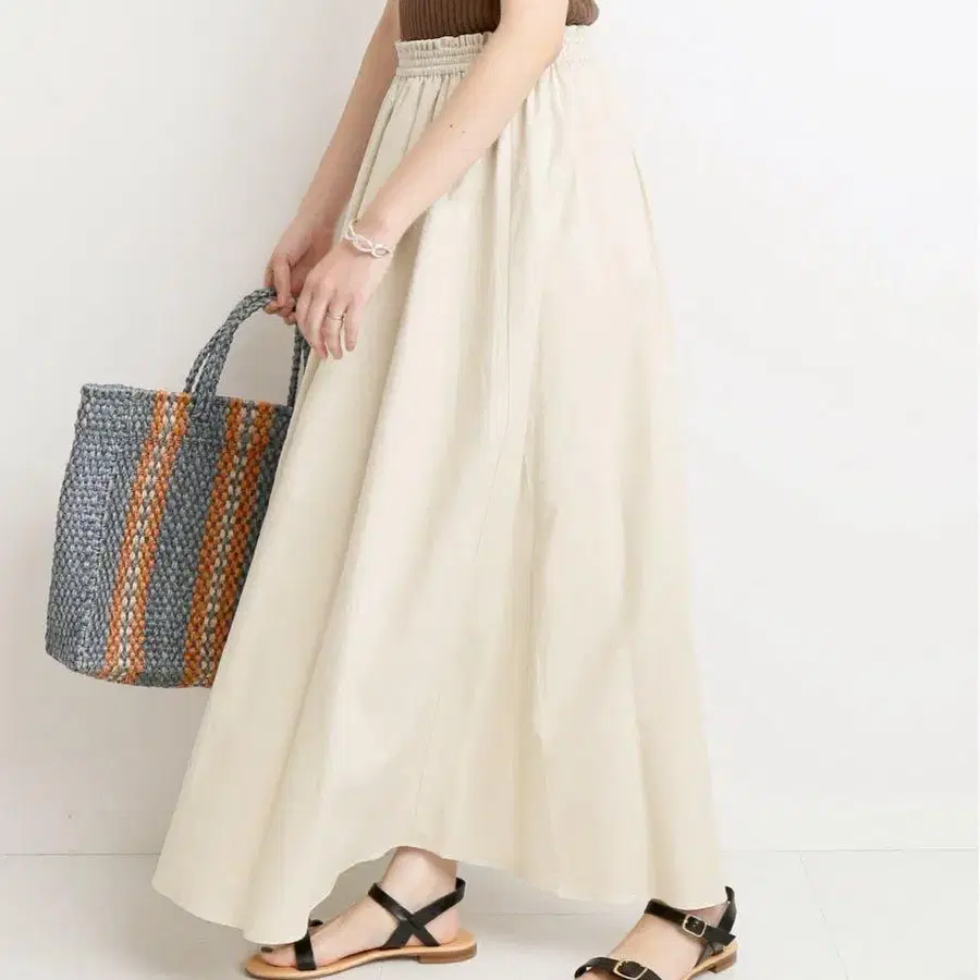 야마다야 FENNEL 플레어 스커트 베이지 롱 기장 턱
