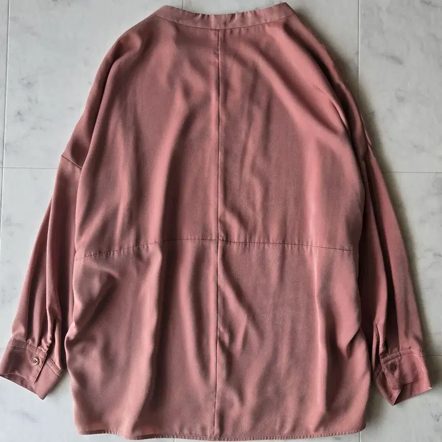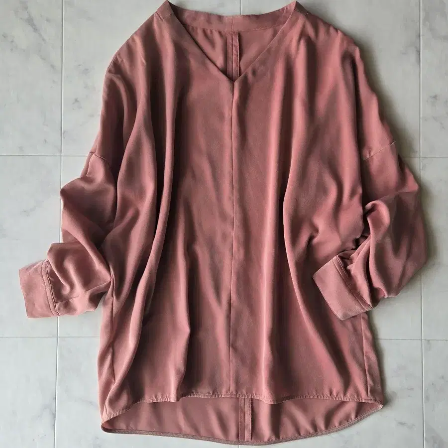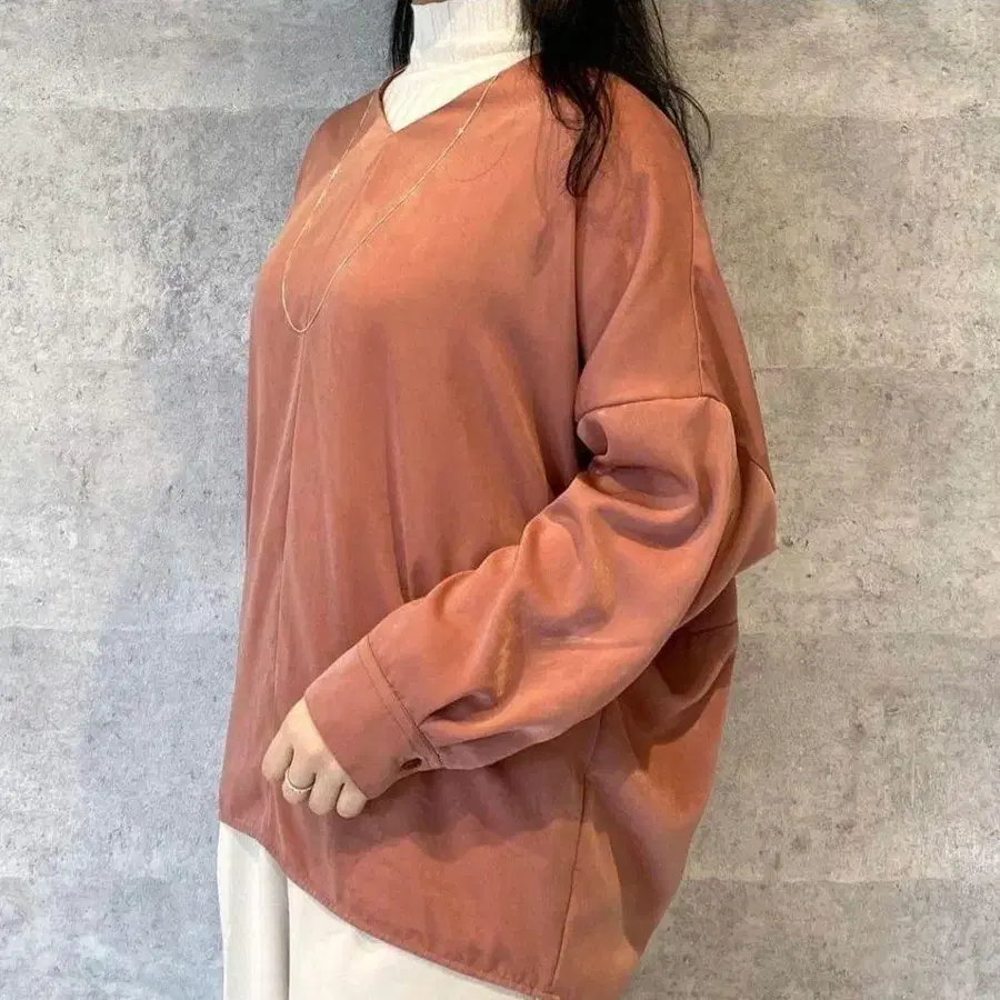 새상품급 리브 드와 기모 새틴 에포트리스 블라우스 오렌지 핑크 풀오버