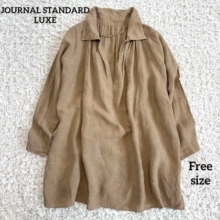JOURNAL STANDARD LUXE 저널 스탠다드 럭스 린넨 100% 풀오버 셔츠 스키퍼 튜닉 넥에 개더를 넣은 드롭 숄더 풀오버 튜닉입니다. 암홀 아래에 바닥을 달아 입기 편하게 만들었으며, 날씬해 보이는 좁은 소매로 디자인했습니다. 색상: 베이지 브라운, 갈색에 가까운 색감입니다. 전체적으로 진하게 나왔지만, 조금 더 옅은 색감입니다. 사이즈: F 프리 사이즈 어깨 너비 62cm 소매 길이 49cm 가슴 너비 80cm 기장 75cm ※ 개인 측정으로 인해 약간의 오차가 있을 수 있습니다. 소재: 린넨 100% 린넨 특유의 네프와 매듭이 보일 수 있으니 양해 부탁드립니다. 대기업 중고샵에서 구매했습니다. 착용 횟수 등은 알 수 없으니 양해 부탁드립니다. 눈에 띄는 흠집이나 얼룩은 없지만, 중고품이라는 점을 이해해 주시면 감사하겠습니다. 색상 - 베이지 계열 소재 - 린넨 색상/넥 - V넥 비침 - 비침 있음 얼룩, 찢김, 냄새 등 - 없음
