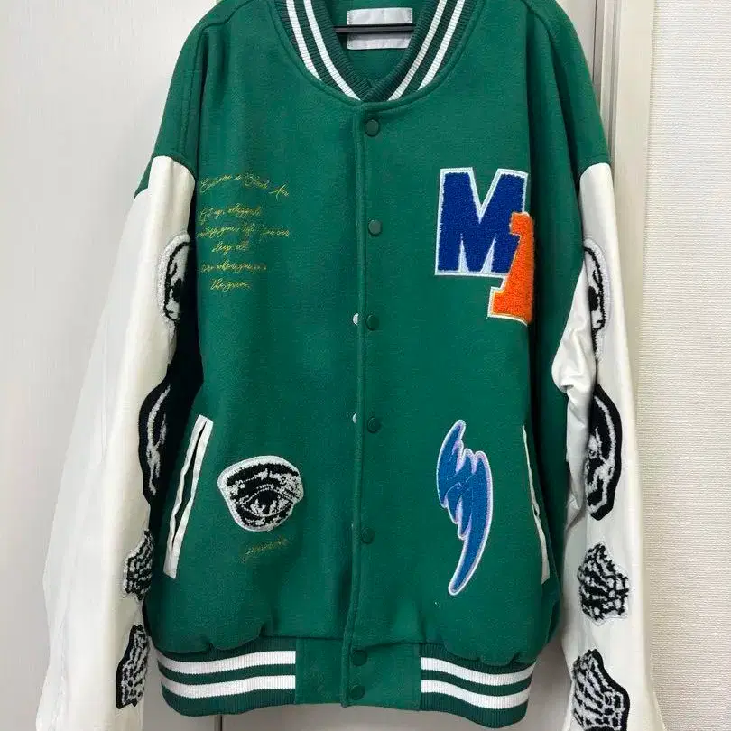 Black air 스컬 자수 바시티 자켓 그린/화이트 XL 사이즈