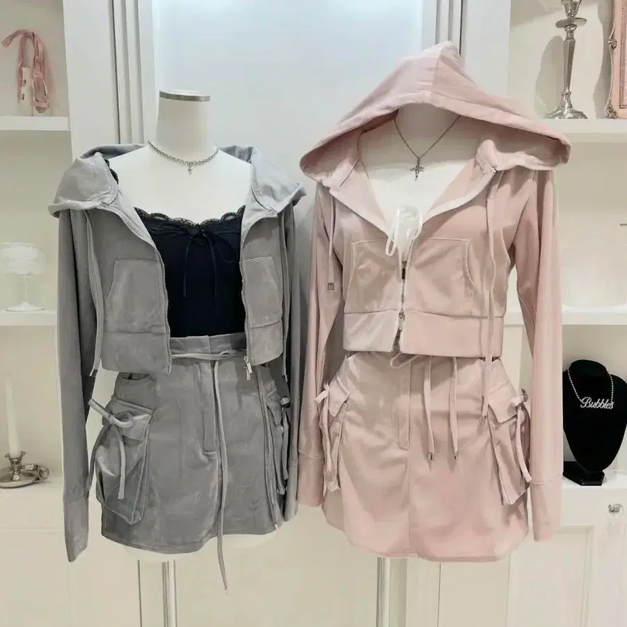 • 셋업 캐주얼 페미닌 집업 후드티 스커트 2종 상하의