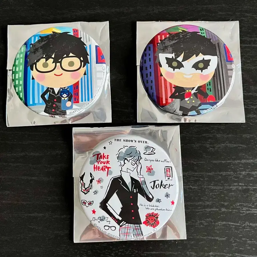 페르소나 5의 조커 산리오 배지 3개 세트.