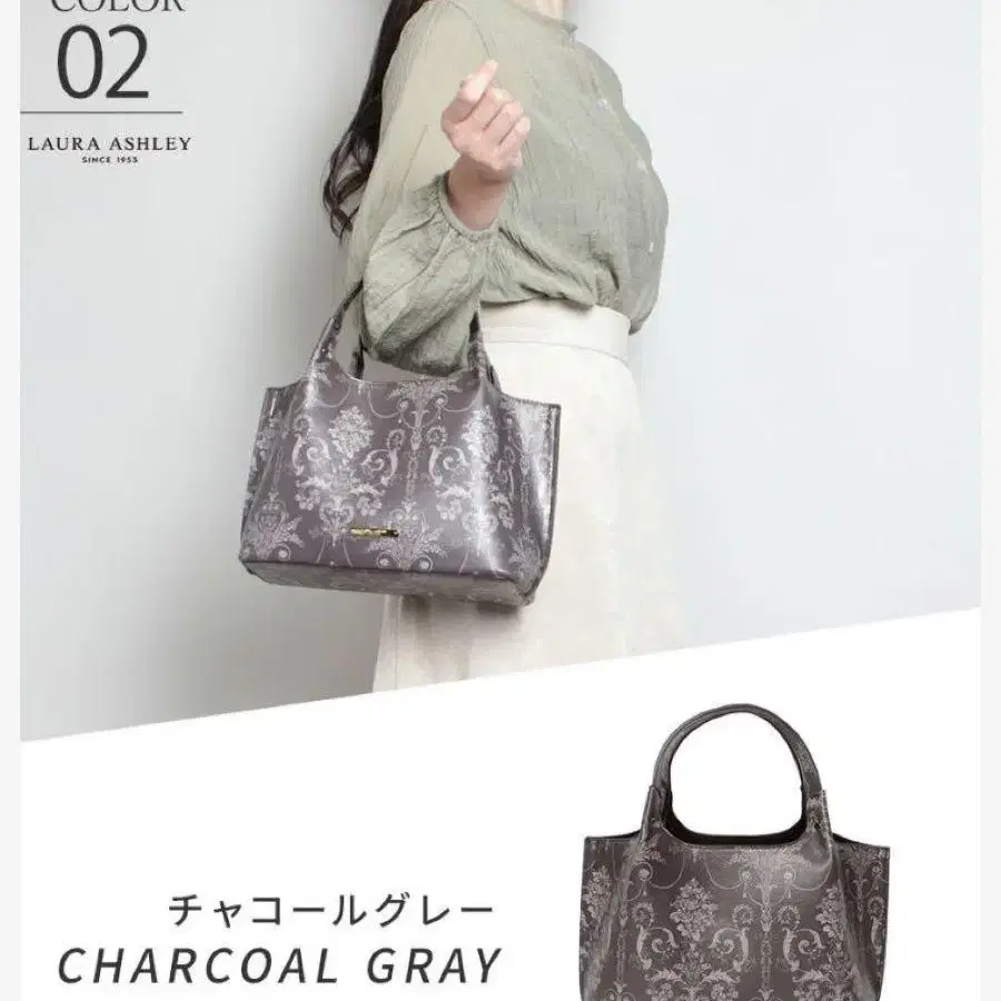 LAURA ASHLEY (로라 애슐리)의 화려한 올 패턴 & 엘레강스 토트백 (ILPC-01) 차콜 그레이 색상입니다.