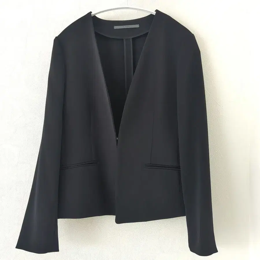 심플하고 세련된 디자인의 노카라 자켓, 블랙.