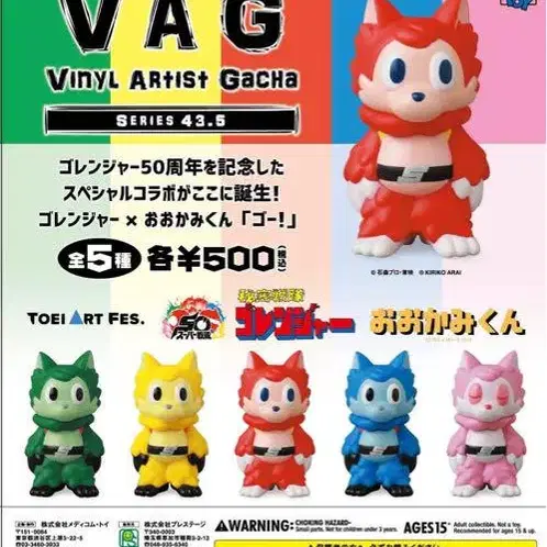 다채로운 색상의 비닐제 오오카미군 피규어 세트. - 모델명: 오오카미군 - 색상: 빨간색, 파랑, 그린, 노랑, 핑크 - 소재: 비닐 - 시리즈명: VAG (Vinyl Artist Gacha) 캡슐은 포함되지 않습니다. 방문해 주셔서 감사합니다.