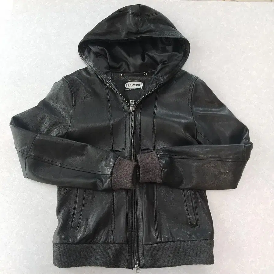 - 스타일: 후드 부착 가죽 자켓
