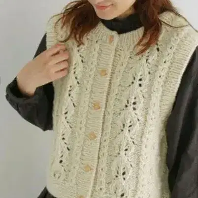 • ICHI 이치 울 사이드 열림 니트 베스트 케이블 니트