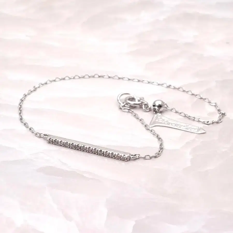 정렬된 다이아몬드가 시원한 빛을 발합니다. Hirotaka의 시그니처 시리즈에 팔찌가 추가되었습니다. 조절 가능한 체인으로 팔에 맞추거나 살랑살랑 움직이게 할 수도 있습니다.