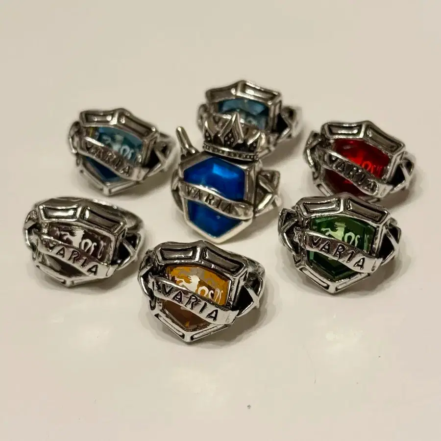 자동 번역되었어요. 원문보기가정교사 히트맨 리본에 등장하는, 뉴(신생) 바리아 반지 7점입니다. 전면에 [VARIA] 문자가 새겨져 있습니다.