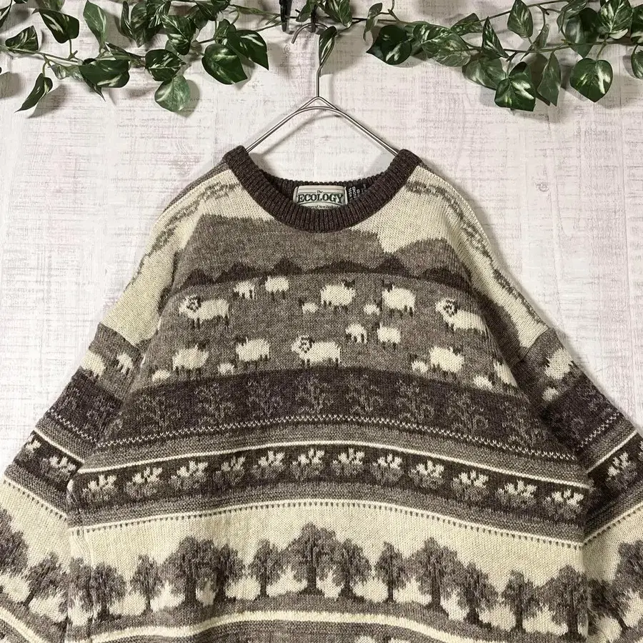 • 빈티지 니트 스웨터 페어아일 패턴 로우게이지 니트 두꺼운