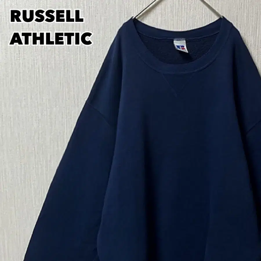 90s RUSSELL ATHLETIC 러셀 애슬레틱 맨투맨 트레이닝복 무지 네이비 자수 택 앞V