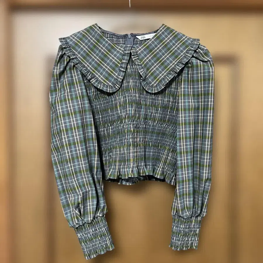 ZARA 체크 피터팬 옷깃 셔링 블라우스
