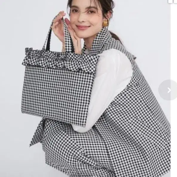 깅엄 체크 디자인의 토트백.
