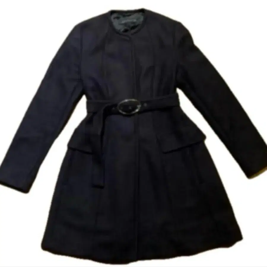 ZARA 벨트 노카라 울 코트 네이비