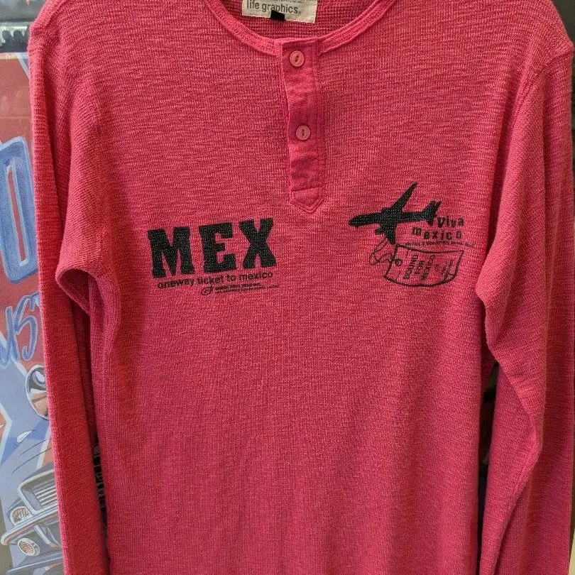 핑크 헨리넥 긴팔 티셔츠 life graphics