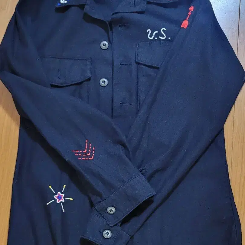 SHANANA MIL 자수 밀리터리 블랙 셔츠 S 새상품급