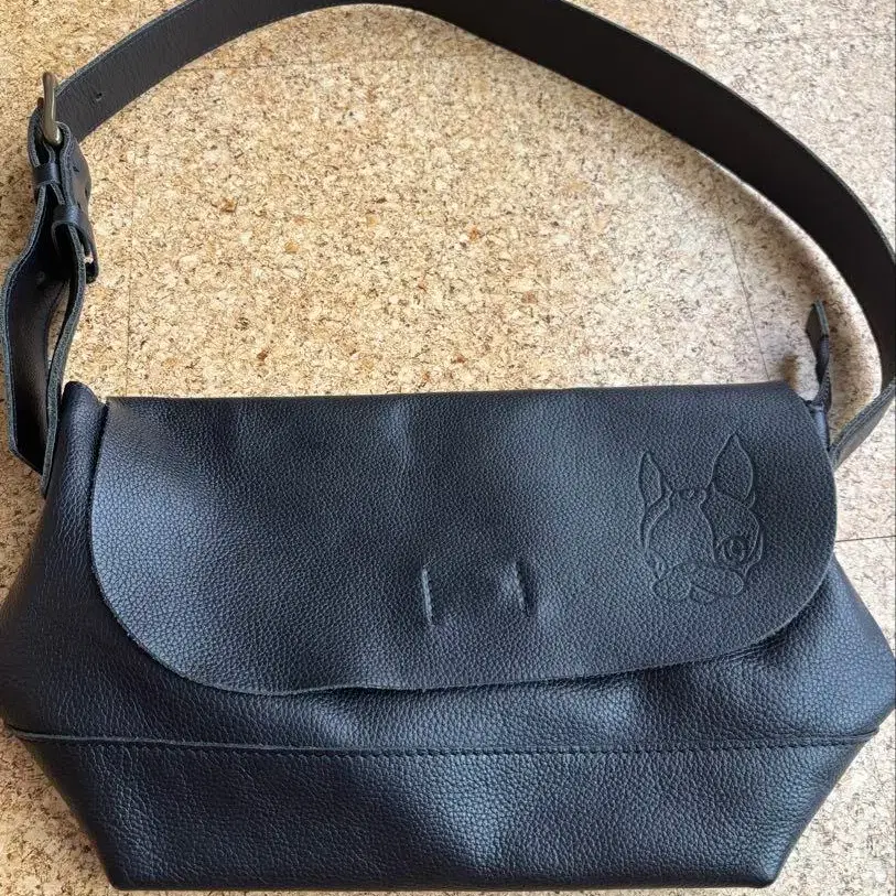 IL BISONTE 로고 메달 가죽 숄더백 블랙 주름 가죽