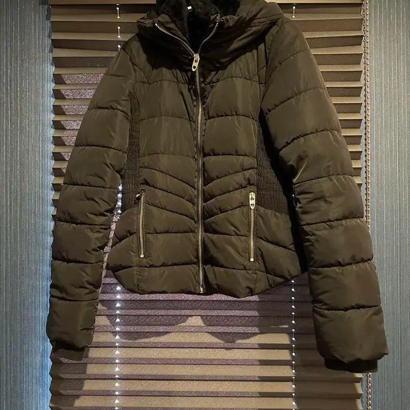 ZARA 자라 퀼팅 패딩 자켓 퍼 골드 네이비 S