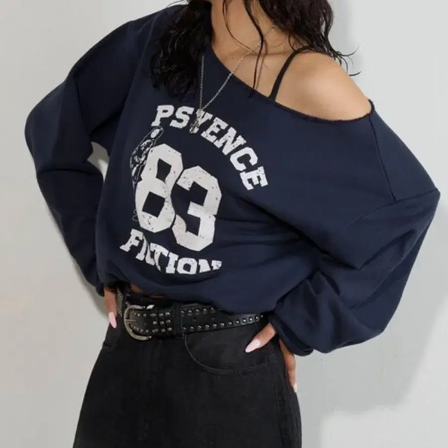 엘리엇 넘버링 원 오프숄더 맨투맨