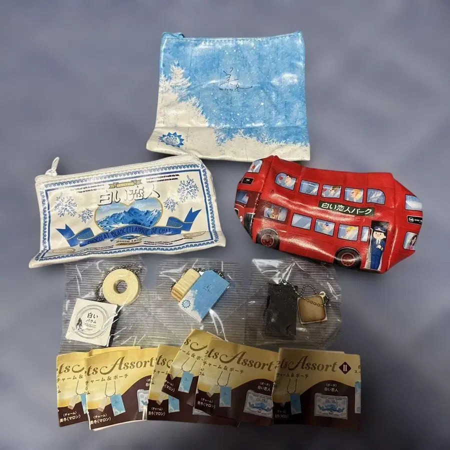 시로이 코이비토 파크 가챠 참 & 파우치 ⚪︎ 참 시로이 코이비토 (포장지) 시로이 바움 미후유 (밤) ⚪︎ 파우치 시로이 코이비토 미후유 런던 버스 캔디 총 6점 컴플리트 세트