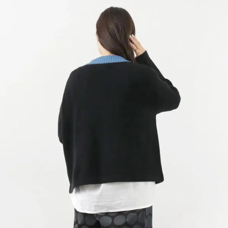 옷깃의 배색이 정말 귀여운 니트입니다. 무거워지기 쉬운 가을/겨울 코디에 은근하게 화사함을 더해줍니다. 옆면에는 작은 슬릿이 있어 적당한 릴랙스 무드를 연출해 줍니다.