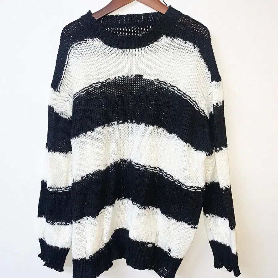 화이트 블랙 보더 무늬 그런지 니트입니다!