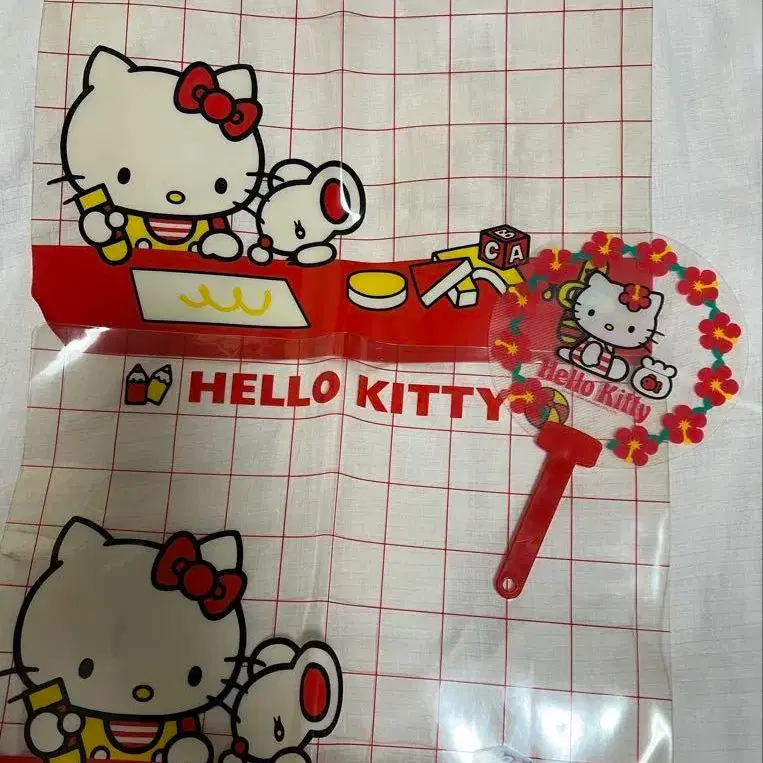 헬로키티 비닐 매트입니다. 책상 위 등에 깔아두는 것도 좋을 것 같습니다. 1996년경의 상품 사용감 있으며, 오랜 세월의 황변, 얼룩이 약간 있습니다. 굽힘 자국이 있습니다. 접어서 발송됩니다. 헬로키티 부채(덤)입니다. #헬로키티