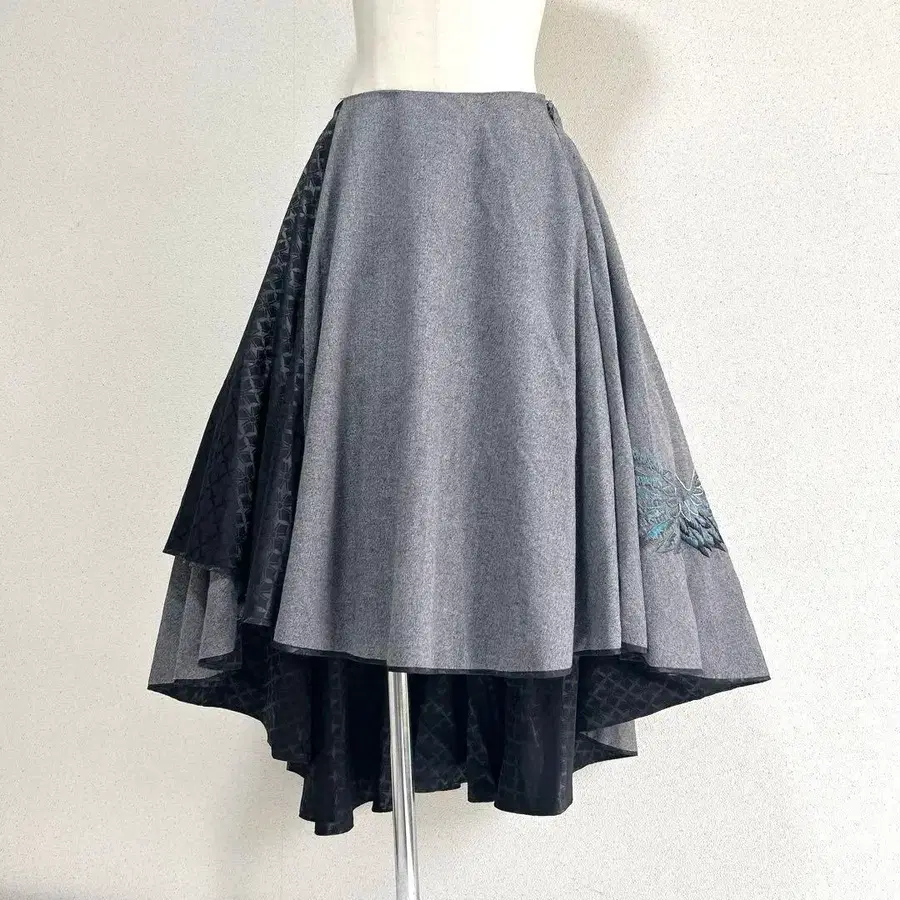 일본풍 패턴 자수 이종 소재 비대칭 스커트