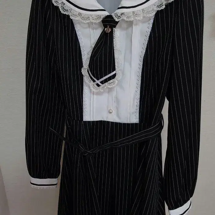 1Secret Honey 넥타이 부착 스트라이프 원피스