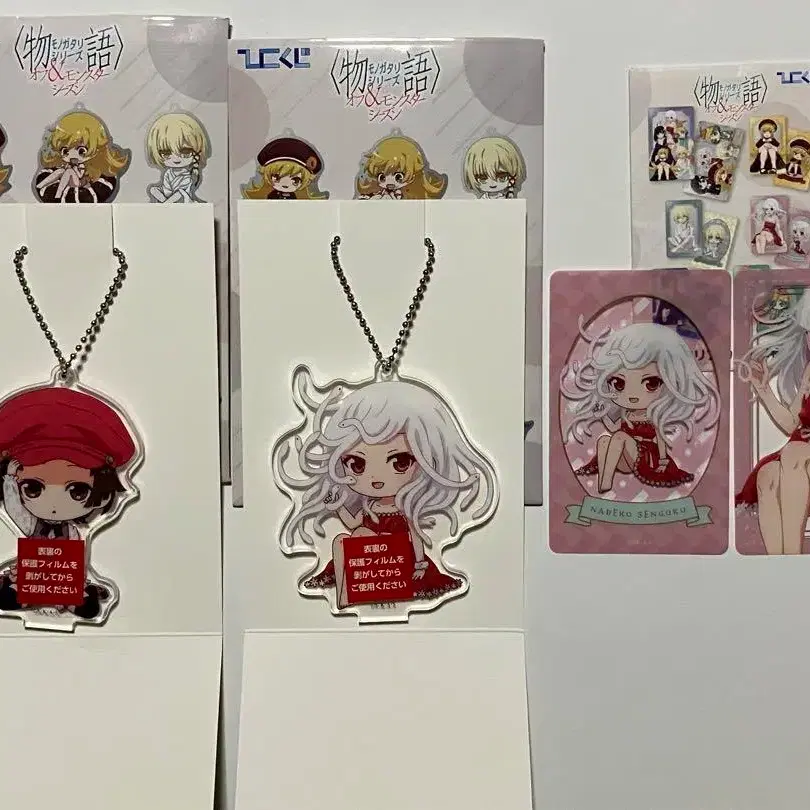 히코쿠지 모노가타리 시리즈 오프 & 몬스터 시즌 D상 아크릴 참 4 센고쿠 나데코 A D상 아크릴 참 5 센고쿠 나데코 B E상 클리어 카드 2장 세트 센고쿠 나데코 상기 3점 세트입니다. 미사용 새상품입니다. 아크릴 참은 보호 필름을 떼지 않고 그대로 붙어 있습니다. 클리어 카드는 약간의 마찰 흠집이 있습니다. 배송 방법은 유유 메루카리 택배입니다. 니시오 이신