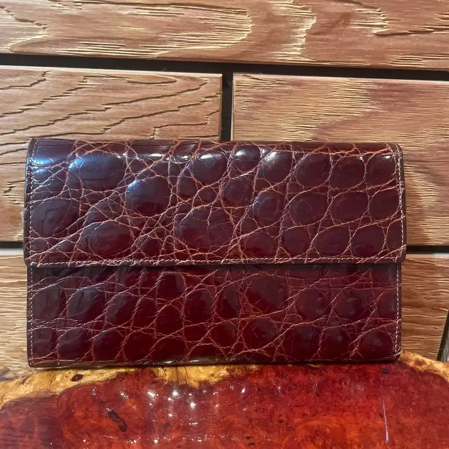 IL BISONTE 레드 크로커다일 패턴 장지갑