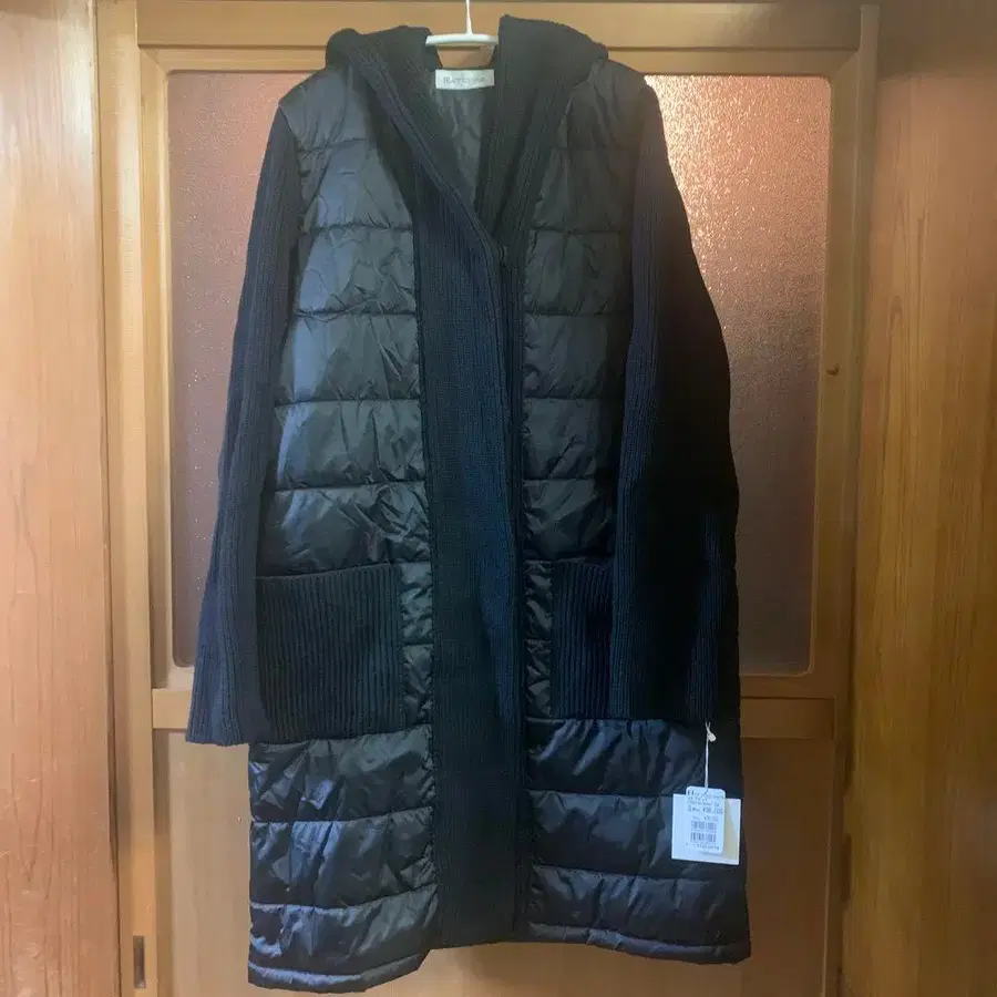 새상품 MAITRESSE 블랙 이소재 콤비 코트 니트와 폴리 야마다야