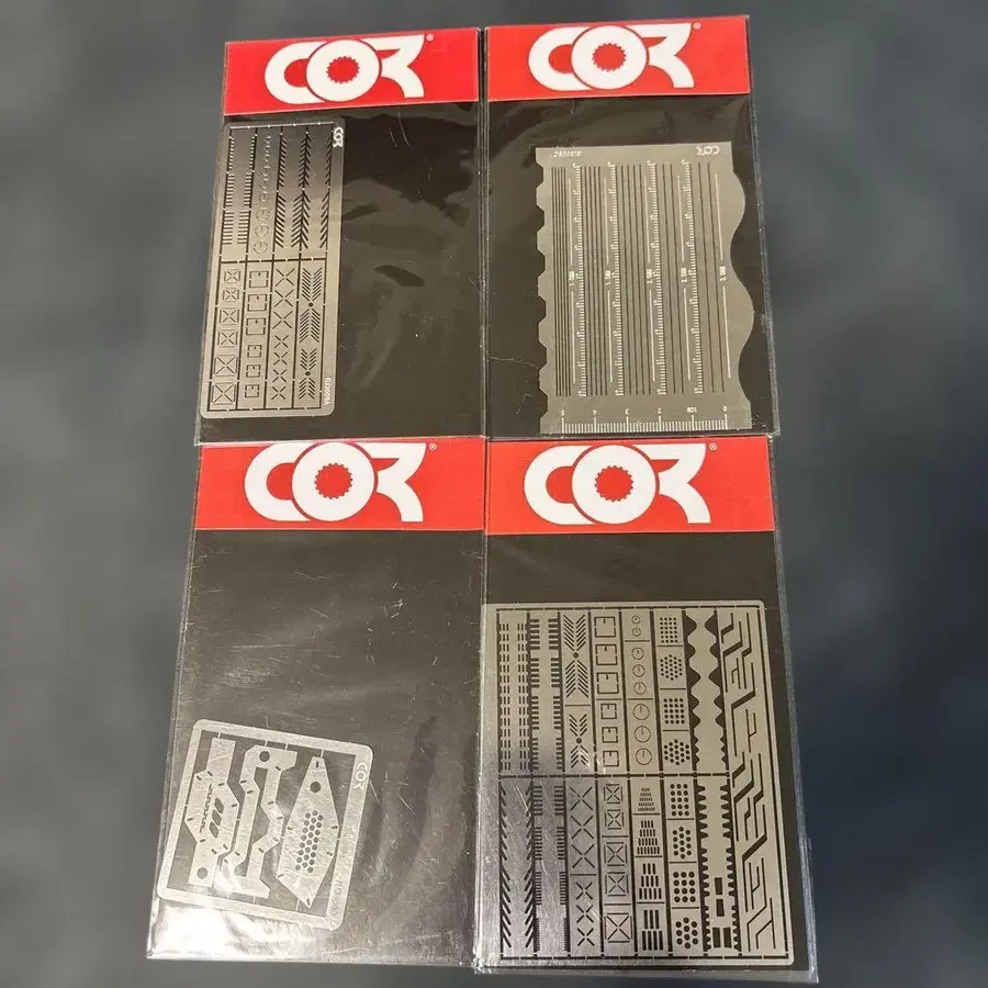 COR의 먹선 가이드 템플릿 4종 세트입니다. 미개봉 미사용품입니다. 건담 프라모델 등에 최적이라고 생각합니다. 먹선 가이드로 어떠신가요?
