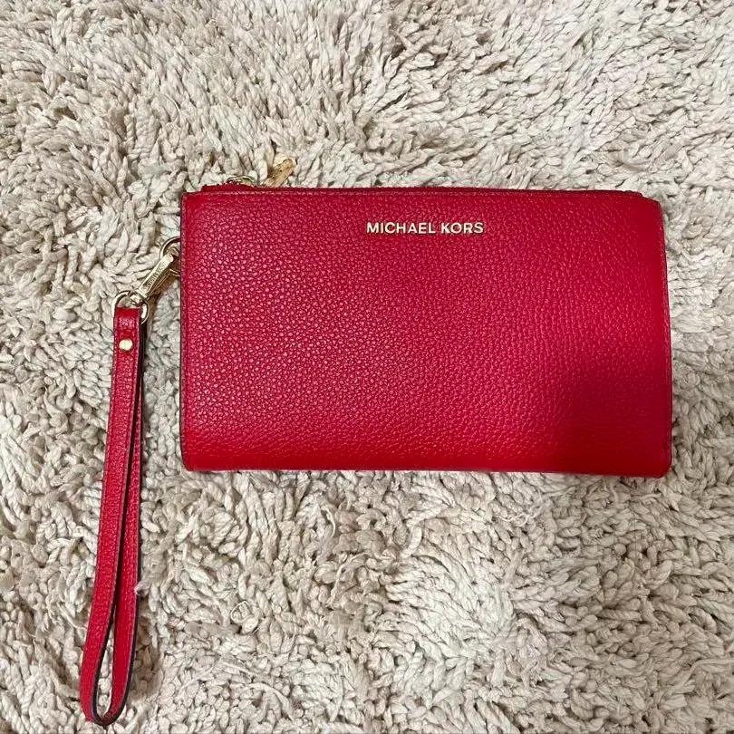 라운드 지퍼 방식의 레드 장지갑, 카드 슬롯 포함하여 기능적 - 브랜드: MICHAEL KORS - 색상: 레드 - 디자인: 라운드 지퍼 방식 - 내부 포켓: 카드 슬롯 있음 - 스트랩: 탈부착 가능한 스트랩 포함 방문해 주셔서 감사합니다. 2년 전 구매한 상품으로 미사용 새상품입니다. 개인 관리가 되었지만, 상당히 새상품급이라고 생각합니다.
