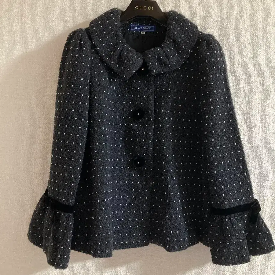 M'S GRACY 도트 벨로아 리본 자켓 숏코트 ⚫︎ 색상 진한 그레이 계열 ⚫︎ 사이즈 40 기장 57cm 가슴 너비 50cm 어깨 너비 34cm 소매 길이 55cm 포켓 2개 미사용이지만 자택 보관입니다. 세세한 부분까지 완벽을 추구하시는 분은 삼가해 주십시오.