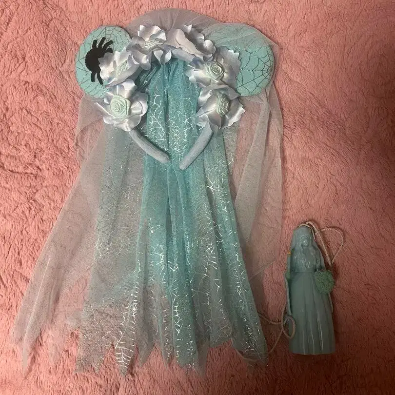 디즈니 리조트 고스트 신부 스카이블루 거미줄 디자인 머리띠