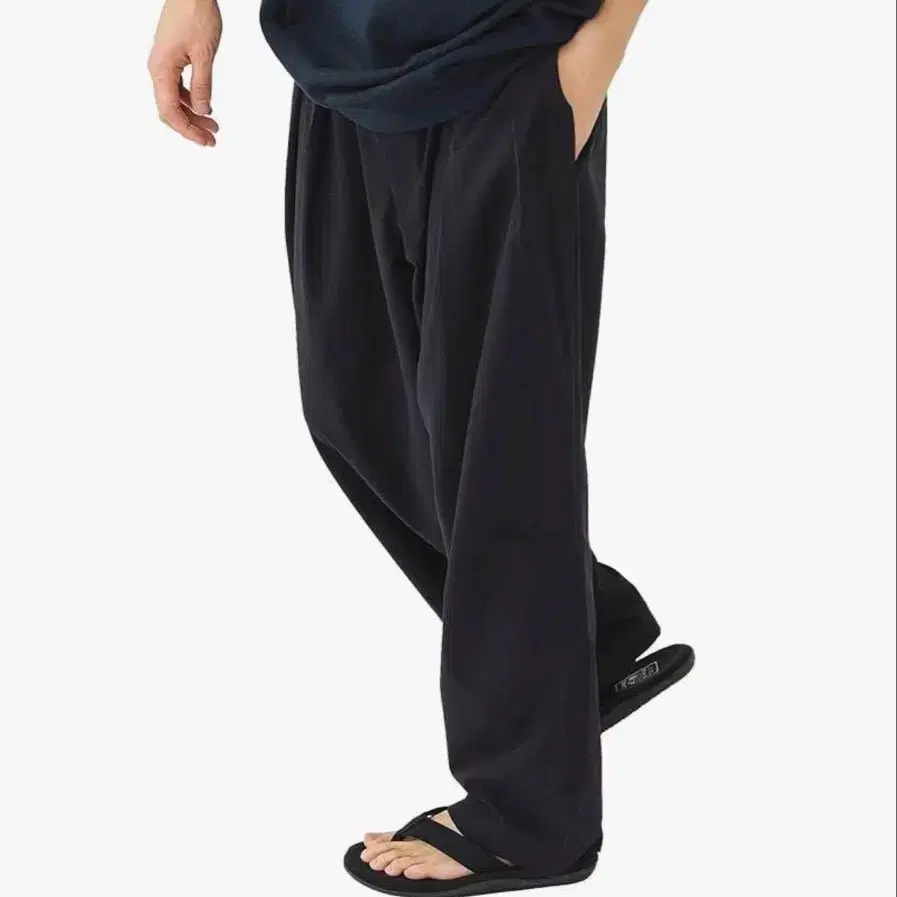 매우 섬세한 메쉬 느낌의 소재를 사용한 2단 플리츠 슬랙스입니다. 크리즈는 일부러 넣지 않고, 와셔 느낌이 나는 가공과 러프한 다리미 마감으로 캐주얼한 인상을 주도록 마무리했습니다.