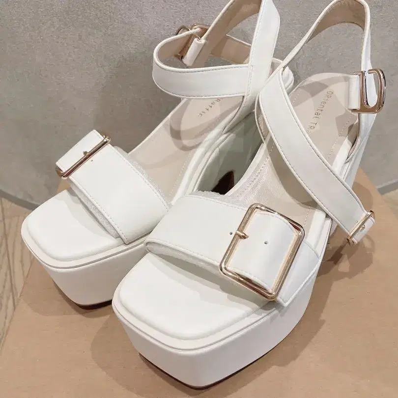 오리엔탈 트래픽 화이트 플랫폼 샌들 크로스 스트랩