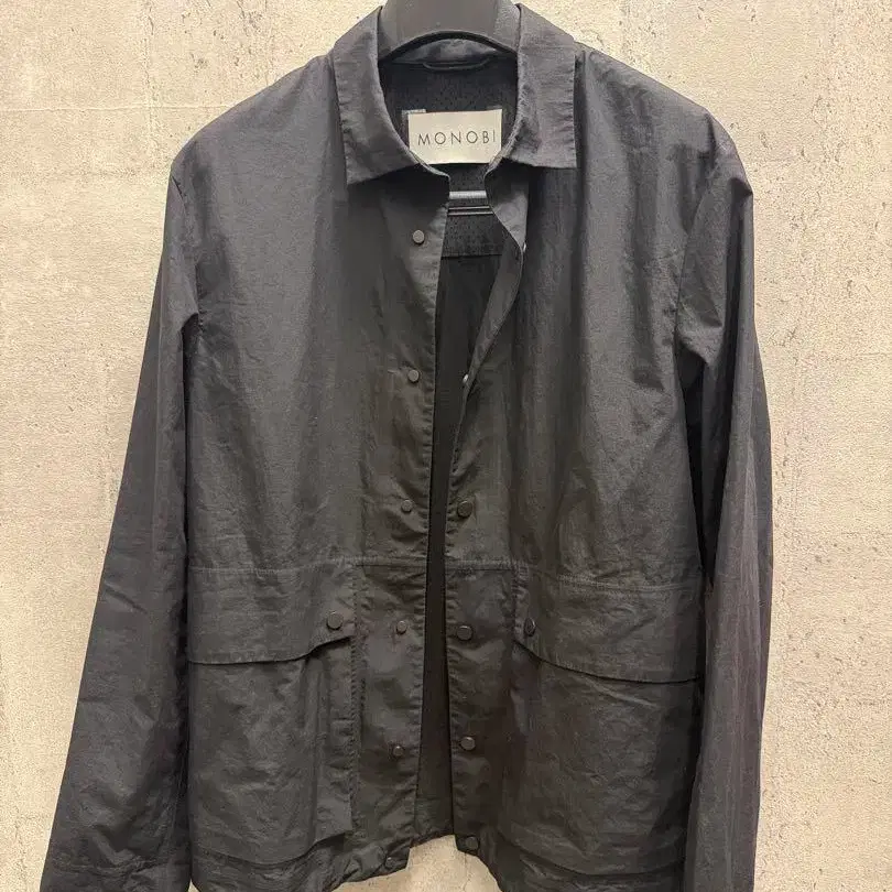 경량의 심플한 디자인의 블랙 자켓.