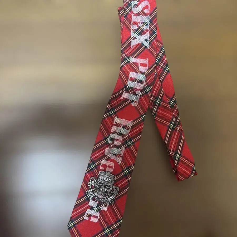 SEX POT ReVeNGe 빨간색 체크 넥타이 펑크 로고 넥타이 커스텀 넥타이 중고품, 자택 보관이므로 신경 쓰이시는 분은 삼가해 주십시오.