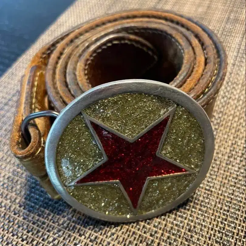 - 디자인: 빨간색 별 장식이 새겨진 버클