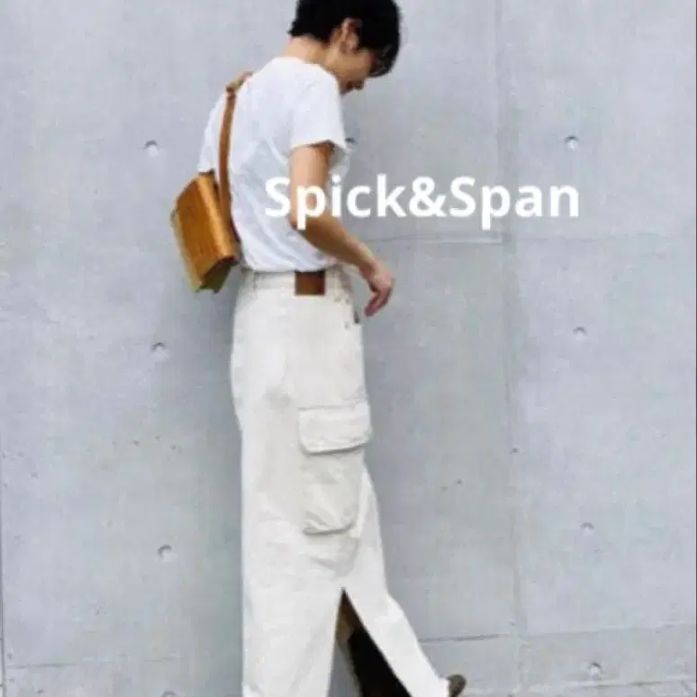 스픽 앤 스팬 데님 롱 스커트 화이트 사이드 슬릿
