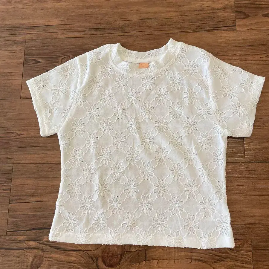 sinoon 시누운 플라워 자카드 레이스 패턴 화이트 T셔츠
