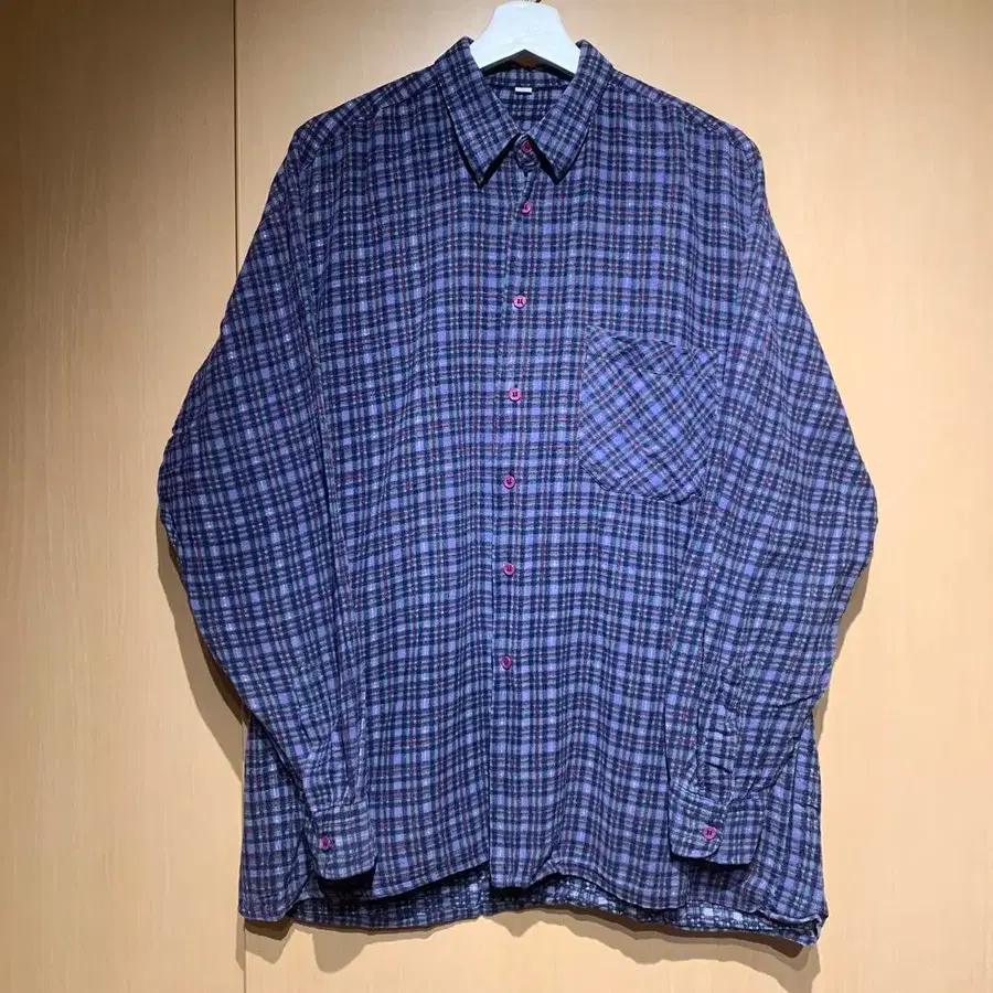 어깨 너비 56cm 가슴 너비 65cm 소매 길이 61cm 기장 79cm cotton 100% 유럽 기획 방글라데시 제조 보라색 계열의 체크 무늬 플란넬 원단 긴팔 셔츠이며, 핑크색 버튼이 특징입니다. - 색상: 보라색 계열의 체크 무늬 - 디자인: 긴팔 셔츠 - 포켓: 가슴 포켓 있음 - 버튼: 핑크색 버튼 사용 - 소재: 플란넬 원단 방문해 주셔서 감사합니다. 패턴 - 체크 색상 - 네이비 계열